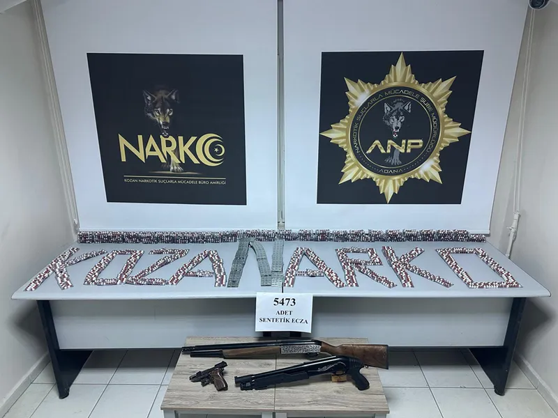 Adreste ve şüphelinin üst aramasında 5 bin 473 uyuşturucu etkili hap, pompalı tüfek, av tüfeği ve kurusıkı tabanca ele geçirildi.