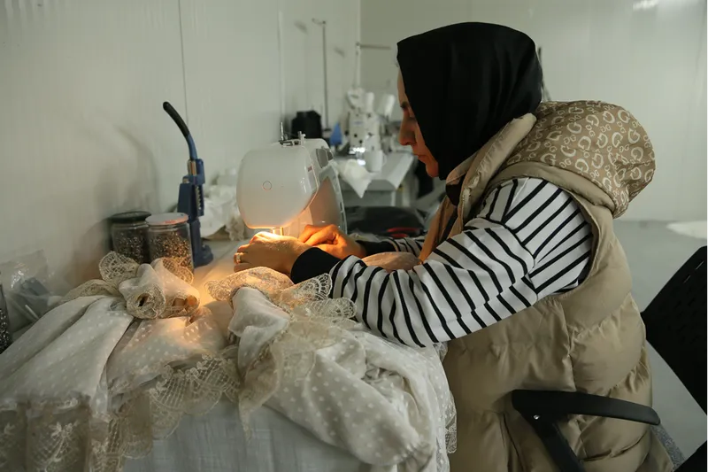 Battaniye, tulum, iç giyim ve kundak koleksiyonlarını pamuklu kumaşlarla tasarlayan Yürürdurmaz, Birleşmiş Milletler Kalkınma Programı ve Kahramanmaraş Ticaret ve Sanayi Odasının destekleriyle İhtiyaç Haritası Konteyner Yaşam Alanı'nda kurulan Kadın İş Geliştirme Merkezi'ndeki (KİGEM) atölyede üretime başladı.