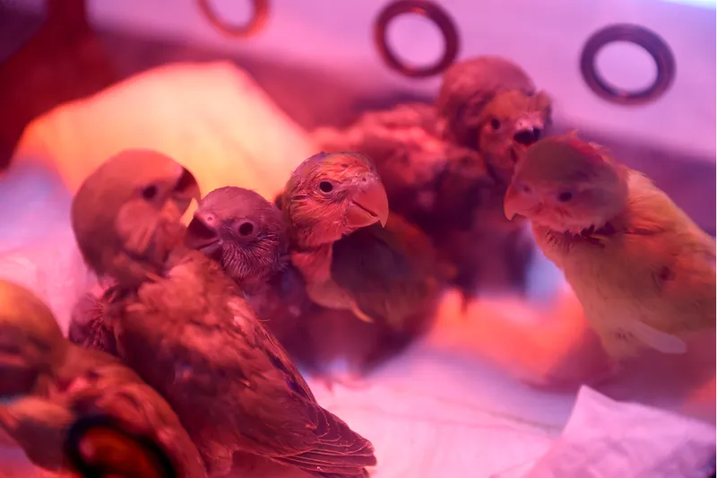 Ele geçirilen 35 günlük 8 cennet papağanı yavrusuna da veteriner hekimlerce özenle bakılıyor.