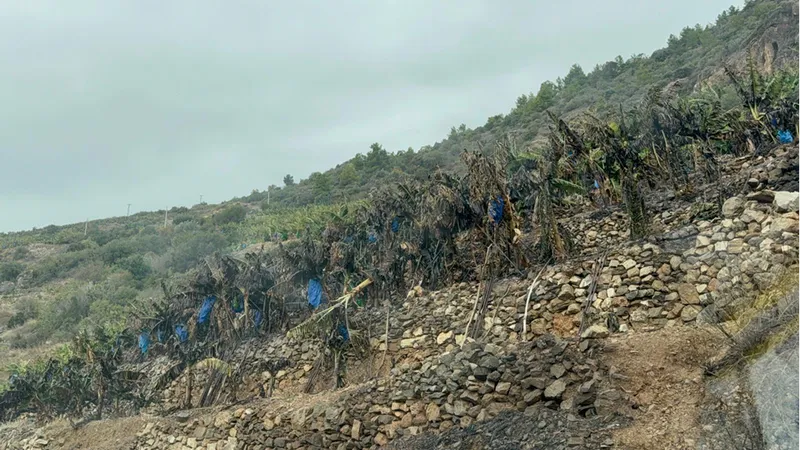 Ekiplerin, rüzgarın da etkisiyle yayılan alevlere müdahale ederek söndürdüğü yangında 50 dekar muz bahçesi zarar gördü.