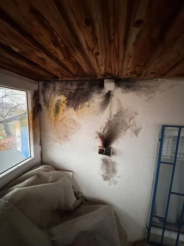 Dereköy Köyü'nde Kezban G.'ye ait ahşap eve, etkili olan şiddetli yağış esnasında yıldırım düştü.