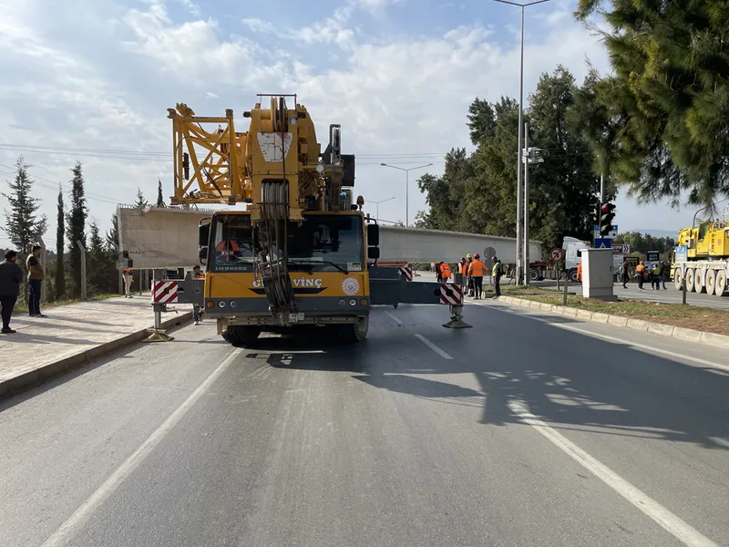 Beton blok yüklü tırın vinçle bulunduğu noktadan kaldırılması için çalışmalar sürüyor.