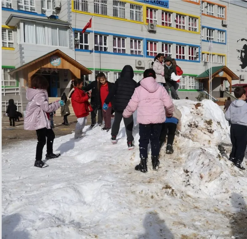ADANA (AA) - Saimbeyli Belediyesi ekiplerince öğrencilerin oynaması için Kozan ilçesindeki okula kar taşındı.