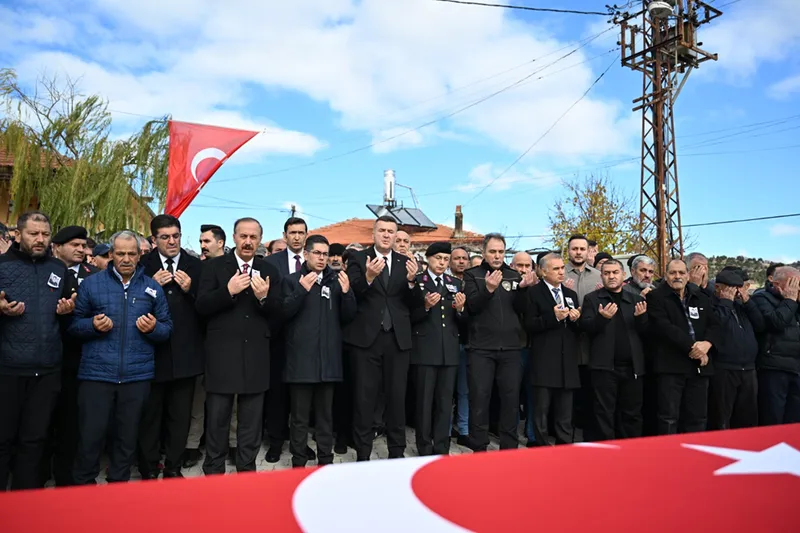 Jandarma Uzman Çavuş Mustafa Palabıyık'ın (33) Türk bayrağına sarılı cenazesi, ilçeye bağlı Yılgıncak köyüne getirildi.