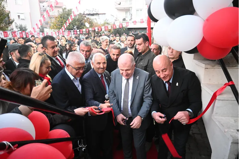 Özdağ, programı kapsamında Ertugan ve Kemer İlçe Başkanı Ahmet Temiz'in katılımıyla Kemer İlçe Başkanlığının açılışını gerçekleştirdi.