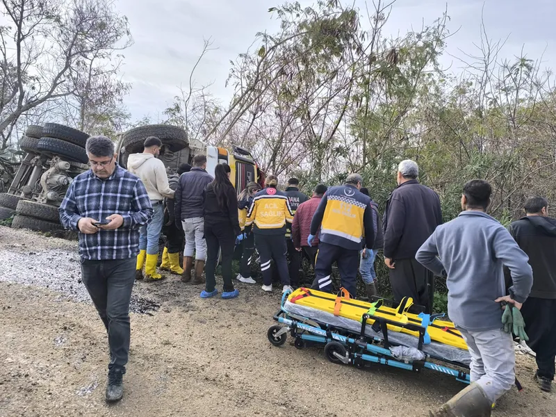 Adana'da devrilen kamyonun sürücüsü yaralandı
