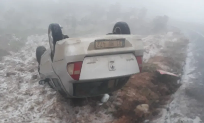 HATAY (AA) - Hatay'ın Altınözü ilçesinde kar yağışının etkisiyle kayganlaşan yolda takla atan otomobildeki 2 kişi yaralandı.