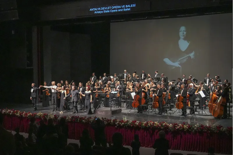 Antalya DOB orkestrasını şef İbrahim Yazıcı yönetti, başkemancı koltuğunda ise Zeynep Işık ile yıllarca aynı sahneyi paylaşan Halit Barış Öğüt yer aldı.