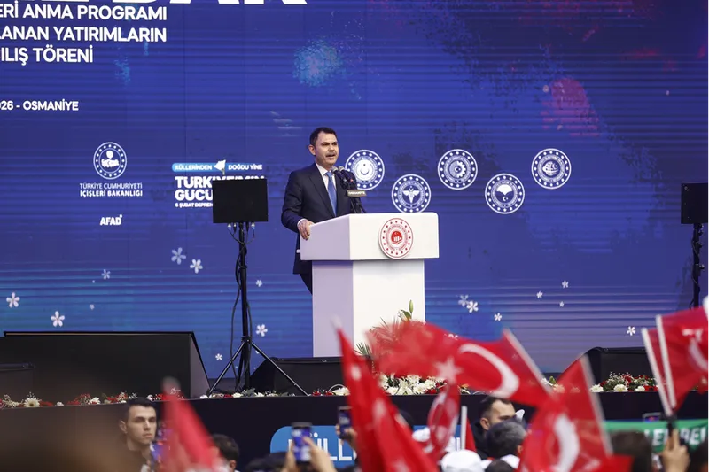 OSMANİYE (AA) - Çevre, Şehircilik ve İklim Değişikliği Bakanı Murat Kurum, "Tarih kitapları, bir yana afet sonrası deprem bölgesine uğramayanları, ilk günden bu yana sadece tiyatro oynayanları koyarken diğer yana bir Avrupa ülkesi büyüklüğündeki alanı inşa eden emekçileri, milyonlarca kardeşine güvenli yuvalar kuran Türkiye'yi, Türkiye Yüzyılı'nı koyacaklar." dedi.