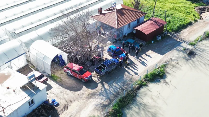 Bölgede yaşanan su baskını AA ekibince havadan görüntülendi. Bazı seraların büyük kısmının su altında kaldığı, sadece çatısının görüldüğü görüntülere yansıdı.