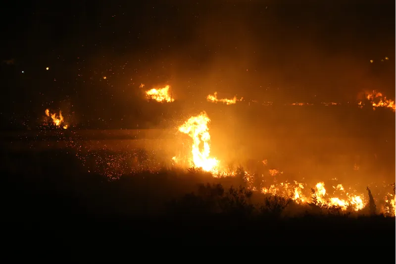 Akarca Mahallesi'ndeki zeytinlik alanda, henüz belirlenemeyen nedenle yangın çıktı.