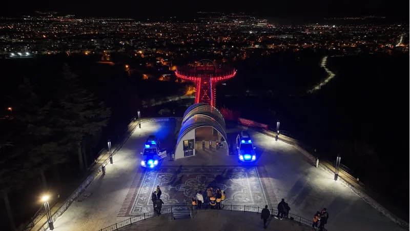 Geceyi aydınlatan kırmızı ışıklı cam teras, kentin birçok noktasından da görüldü.