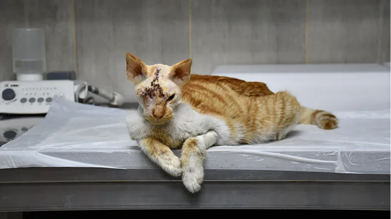 Veteriner hekim Serdar Sayar tarafından yapılan muayenenin ardından çekilen röntgende, kedinin kafatasında kırıklar bulunduğu ve sağ gözünde de hasar oluştuğu tespit edildi.