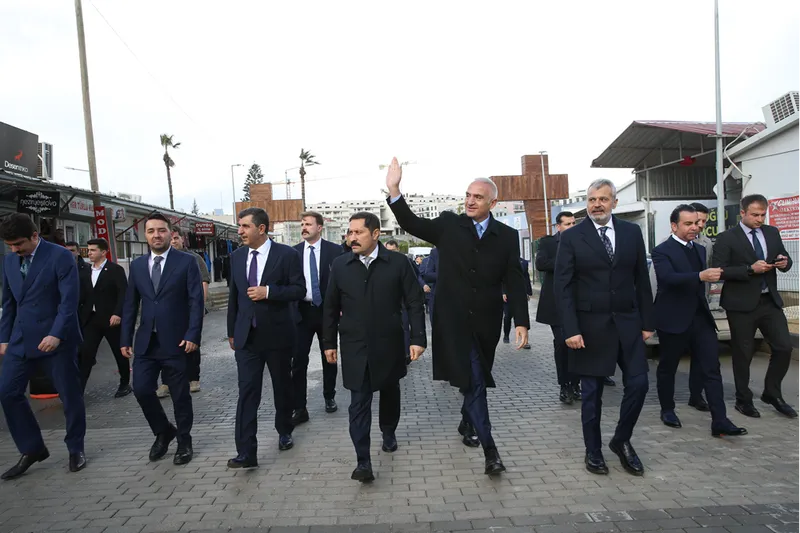 HATAY (AA) - Kültür ve Turizm Bakanı Mehmet Nuri Ersoy, 6 Şubat 2023'teki depremlerde yıkıma uğrayan ve yapılan çalışmalarla yeniden ayağa kaldırılan tarihi Meclis binası, Hatay Medeniyetler Kütüphanesi, Habib-i Neccar Camisi ve Kurtuluş Caddesi'nde incelemelerde bulundu.