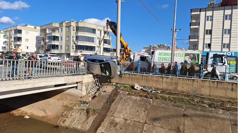 Kazada DSİ'ye ait sulama kanalının korkuluklarını yıkan C.D'nin kullandığı otomobil asılı kaldı.