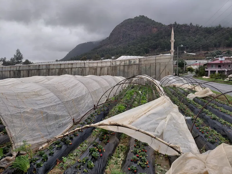 Bozyazı ilçesinde akşam saatlerinde oluşan hortumda bazı çilek ve muz seraları zarar gördü.