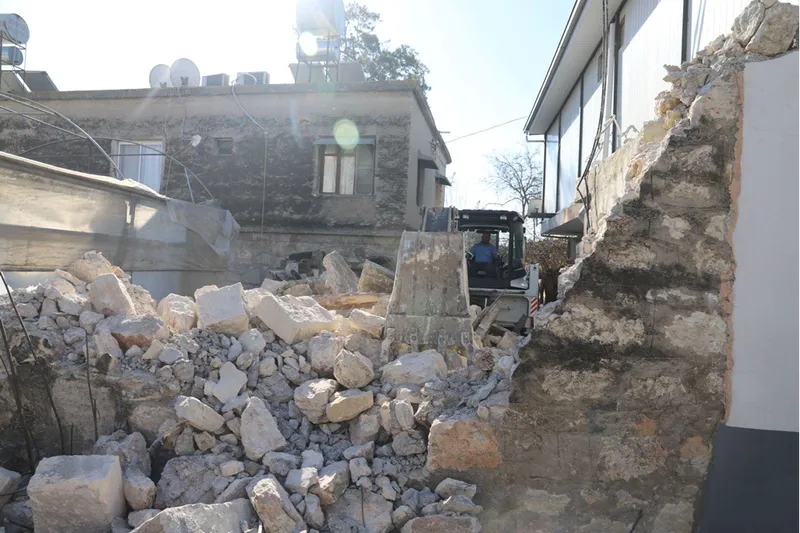 Belediyenin açıklamasına göre, Hürriyet Mahallesi'nde sahiplerince terk edilen ve zaman içinde harabeye dönen 2 katlı evin yıkımı için çalışma başlatıldı.