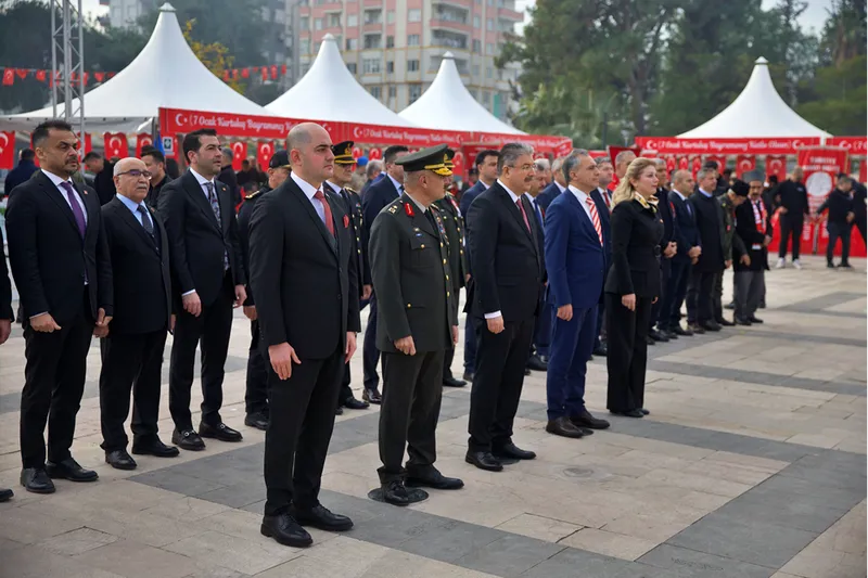 Devlet Bahçeli Meydanı'nda gerçekleştirilen törende, Vali Erdinç Yılmaz, Garnizon Komutanı ve 12. Komando Tugay Komutanı Tuğgeneral Erkan Günal ile Belediye Başkanı İbrahim Çenet, Atatürk Anıtı'na çelenk sundu.