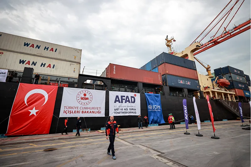 Bu kapsamda AFAD öncülüğünde temin edilen 10 bin 80 çadır, rıhtımdaki "Nz Ningbo" adlı gemiye yüklendi.