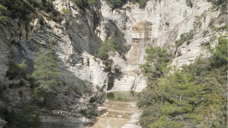 Yaklaşık 30 metre yüksekten akan şelale dron ile görüntülendi.