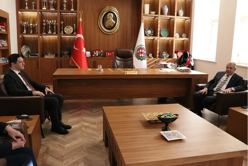 Özdağ, kentteki programı kapsamında Adana Barosuna ziyarette bulundu, Baro Başkanı Volkan Böke ile bir araya geldi.