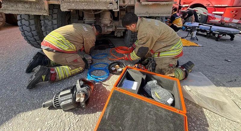 Aracın altında kalan A.Ü, itfaiye ekiplerince bulunduğu yerden çıkarılarak hastaneye kaldırıldı.