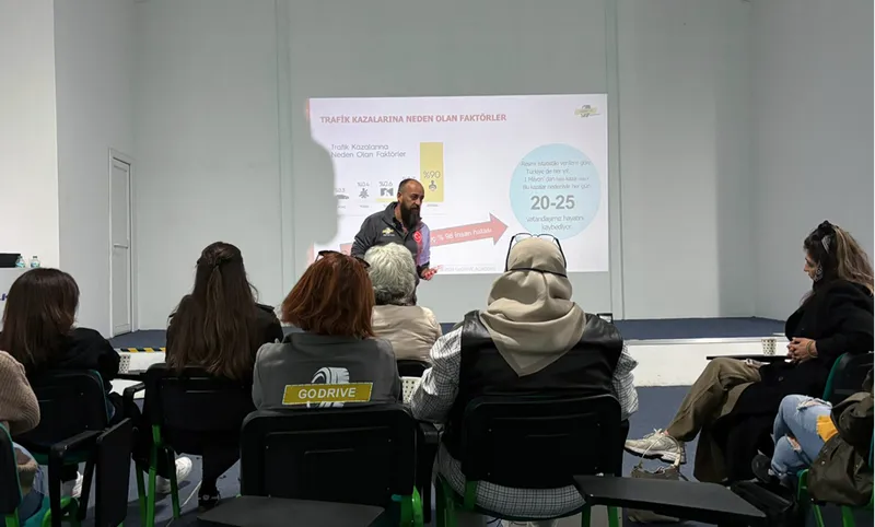 Proje kapsamında TÜRSAB Akademi'de temel eğitimlerini başarıyla tamamlayan kadın sürücü adayları, Go Drive Academy Kurucusu Bilge Kağan Kalaç ve uzman eğitmenlerin liderliğinde güvenli sürüş eğitimlerine katılıyor.