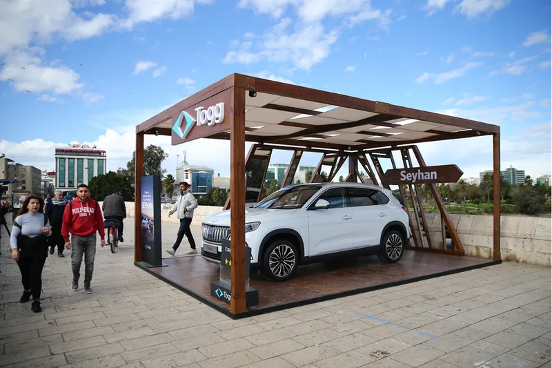 Yeni renk seçeneğiyle sergilenen Togg'un T10X modeli, kentin simgelerinden tarihi Taş Köprü üzerinde vatandaşlarla buluşturuldu.